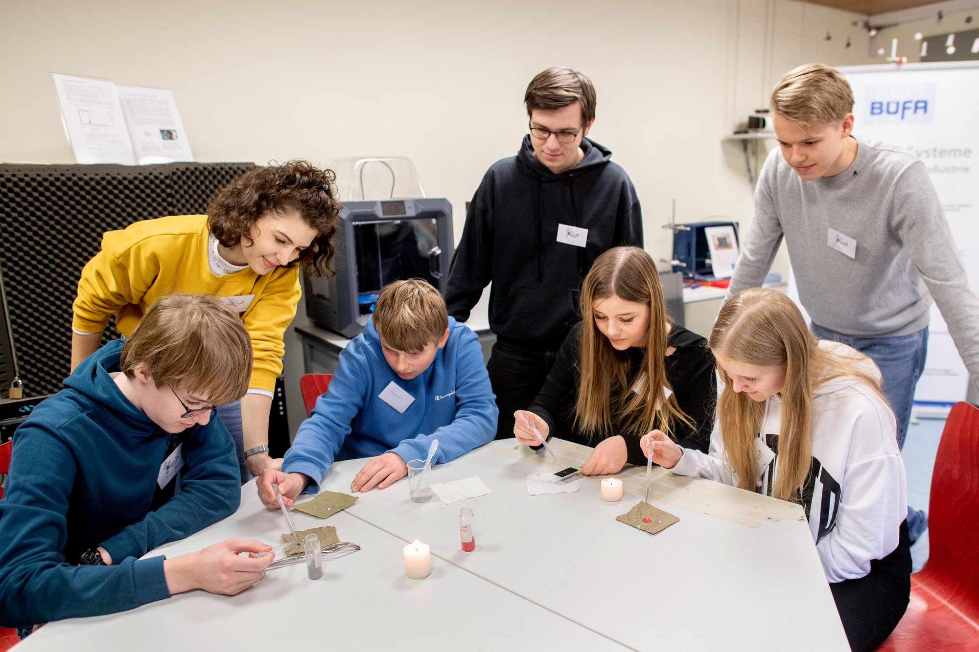 An neun Standorten in Oldenburg, Leer, Delmenhorst und Wilhelmshaven führte XperimenT! dazu ganztägige Workshops durch. Rund 100 Schülerinnen und Schüler aus der Region Nordwest reisten zu den anbietenden Mitgliedsschulen und ließen sich auch durch den Streik bei der Deutschen Bahn nicht stoppen. Aus Spendengeldern der NWZ-Weihnachtsaktion wurden die Reisekosten für Familien übernommen, deren finanzielle Situation angespannt ist, sodass dieses Angebot für jeden niederschwellig nutzbar war. In den Workshops wurde schulübergreifend an verschiedenen Themen wie z.B. Nanotechnologie, Robotik, Bionik, Verhalten von Tieren, 3D-Druck und Augmented Reality gearbeitet. So untersuchten die Kinder beispielsweise die Flugeigenschaften von Papierfliegern, die nach dem Vorbild von Blumensamen aus der Natur gebaut wurden (Bionik) oder sie experimentierten mit Oberflächen von Objekten, die zuvor mit Nanomaterial beschichtet wurden.