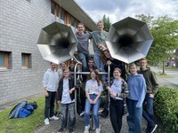 Fünfzehn Teilnehmende aus den Partnerschulen der Region versammelten sich in den letzten zwei Tagen in Oldenburg, um von der Physik der Schwingungen und Wellen tiefer in die Hörakustik und Tonaudiometrie einzutauchen. An drei verschiedenen Standorten wurde geforscht und in großen Teilen selbstständig bzw. in Kleingruppen experimentiert. Angefangen im neuen GAG-Lab der Graf-Anton-Günther-Schule und einem Besuch des Hörgartens (Haus des Hörens) am späten Nachmittag des ersten Tages bildeten die Räume und Labore der Abteilung Hörtechnik und Audiologie den zentralen Kern des Camps.Hier konnten die Schüler:innen sowohl ein grundlegendes Verständnis zur Funktion des Hörens erlangen als auch das eigene Hörvermögen in verschiedenen Versuchsreihen selbstständig ermitteln. Darüber hinaus durften sie in Gruppen im Tonstudio und in Hörkabinen arbeiten und so nicht nur die Technik dahinter verstehen, sondern auch eigene Untersuchungen und Aufnahmen machen. Neben diesen tollen Möglichkeiten waren die Teilnehmenden vor allem vom reflexionsarmen Raum begeistert. Es handelt sich hierbei um einen Raum, der keinerlei Schall von den Wänden zurückwirft, weshalb dieser auch schalltoter Raum genannt wird.