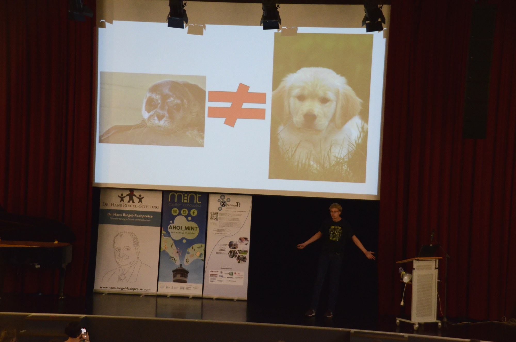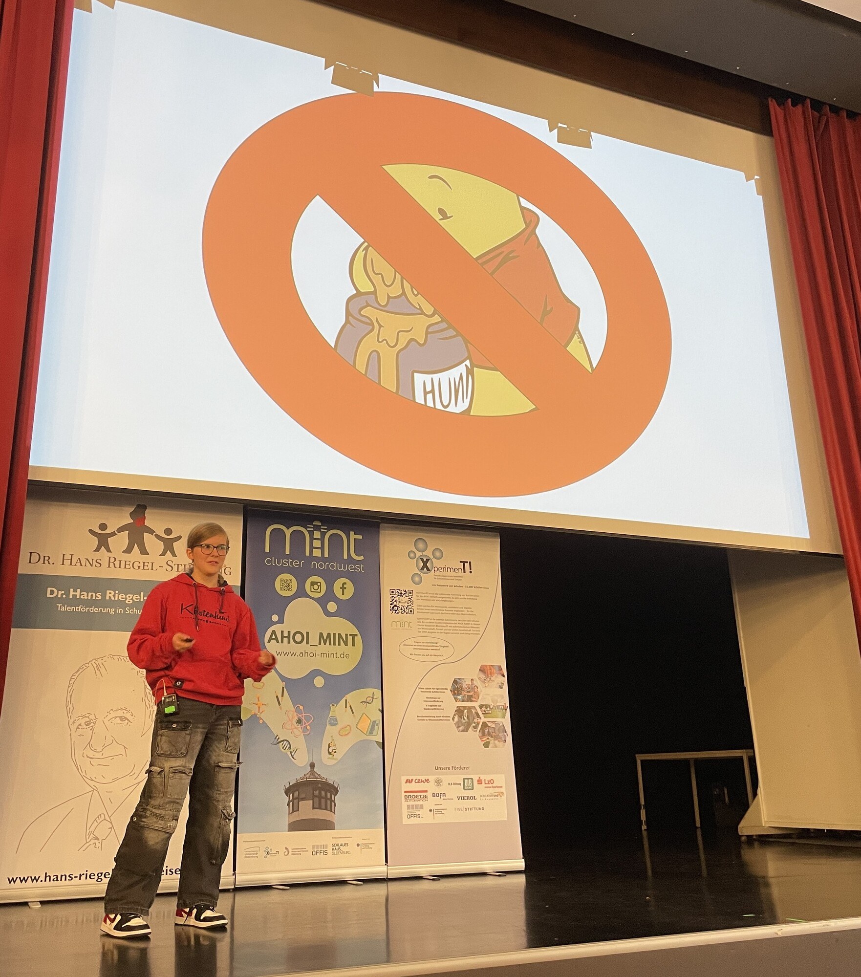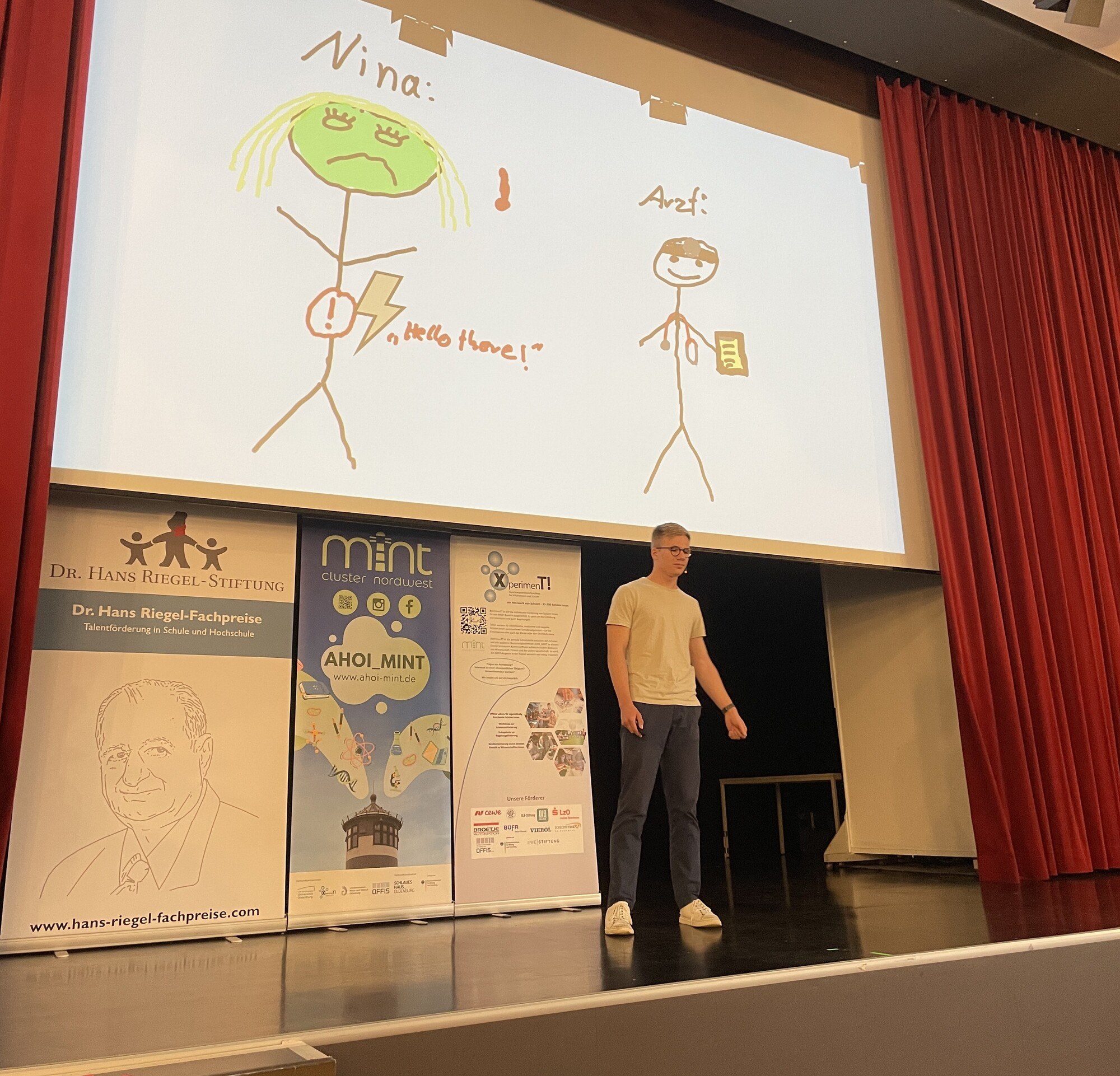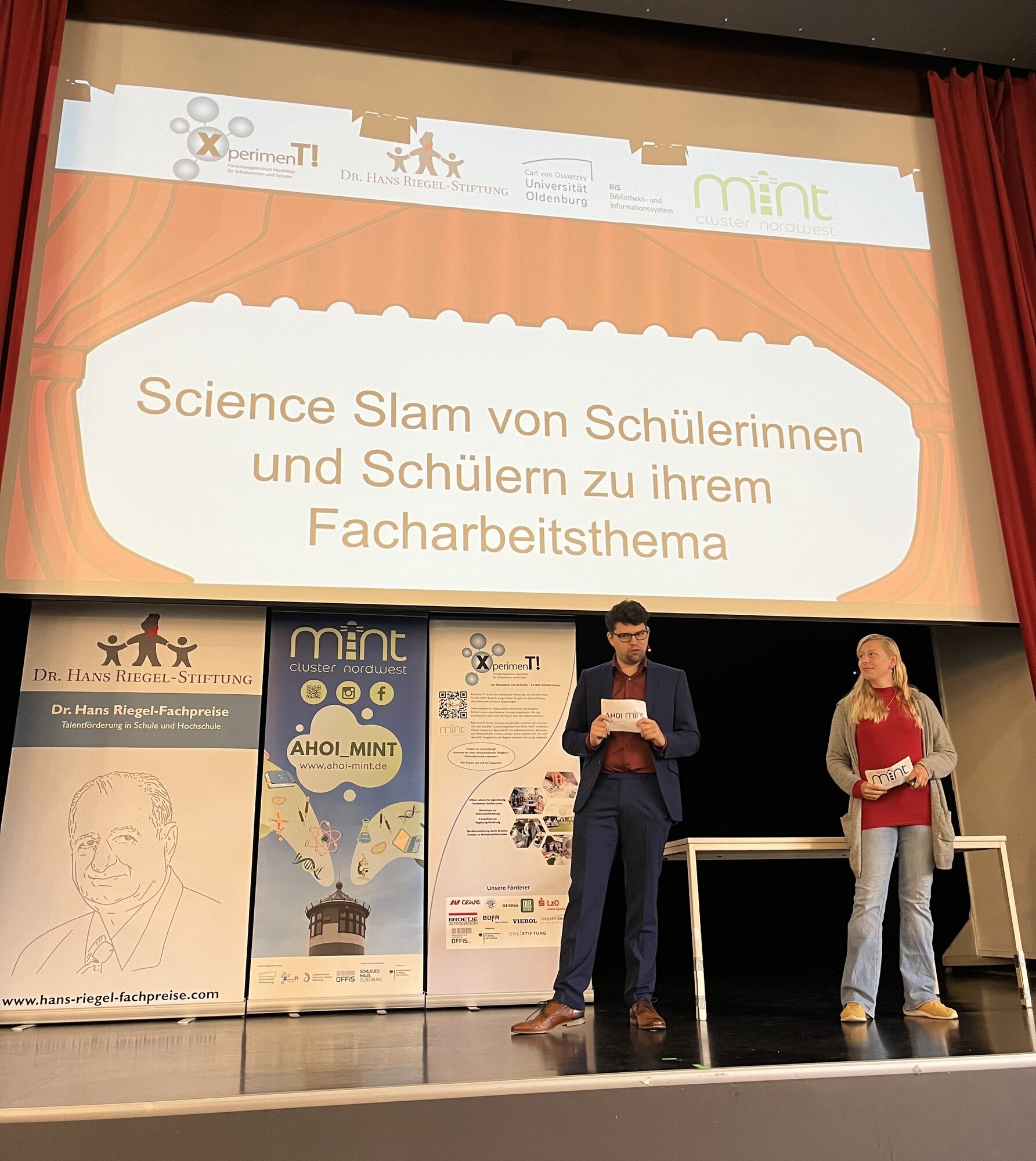 Nach dem Impulsvortrag der Wissenschaftlerin knüpften sechs angehende Abiturienten von fünf verschiedenen Schulen aus Oldenburg und Leer daran an. Diese trugen ihr Facharbeitsthema zu verschiedensten MINT-Themen (Mathematik, Informatik, Naturwissenschaften, Technik) in Form eines Science Slams auf der Bühne vor.