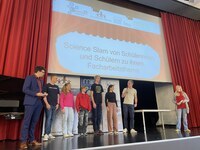 Bis zu dem Auftritt hatten die drei Slammerinnen und drei Slammer bereits einen langen Weg hinter sich. Nach der Bewerbung mit ihrem Facharbeitsthema im Frühjahr absolvierten sie zunächst einen ersten Workshop, indem sie Tricks erlernten, wie man seine Persönlichkeit auf der Bühne optimal entfalten kann. Anschließend ging es ans Eingemachte: An einem Wochenende arbeiteten sie intensiv mit Ingo Nordmann, selber Science Slammer, an der Konkretisierung ihres Vortrages. Dabei war Kreativität für eine pfiffige Präsentationsidee gefragt. Anschließend fehlte nur noch der Feinschliff, wobei die Slammer durch online-Coachings unterstützt wurden, bis der Vortrag bis ins letzte Detail perfektioniert wurde.