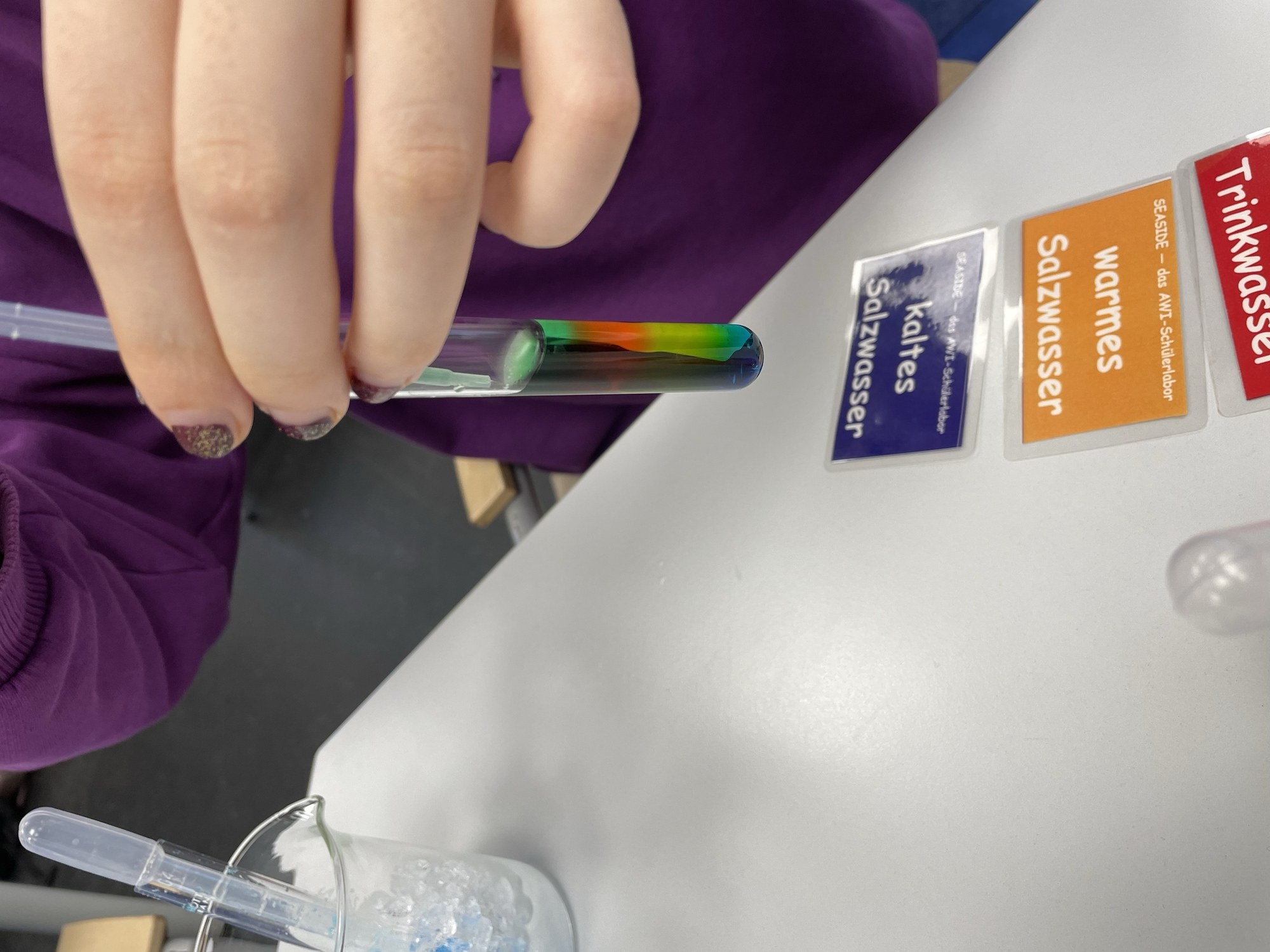 Als kleines Dankeschön machten sich die diesjährigen Slammies auf den Weg nach Bremerhaven.Im Alfred-Wegner Institut slammten Lara und Carl noch mal ihren Vortrag vor den Schülern des High Sea Projektes, bevor es dann ins Labor ging. Nach einer kurzen Einführung zu den Aufgaben des Alfred-Wegner Institutes erreichten alle von ihnen das Zertifikat "Master of pipette". Über- und Unterschichten von farbigen Lösungen stellte nach diesem Workshop für alle gar kein Problem mehr da und das Verständnis für thermohaline Zirkulation des Golfstroms war quasi bildlich sichtbar.