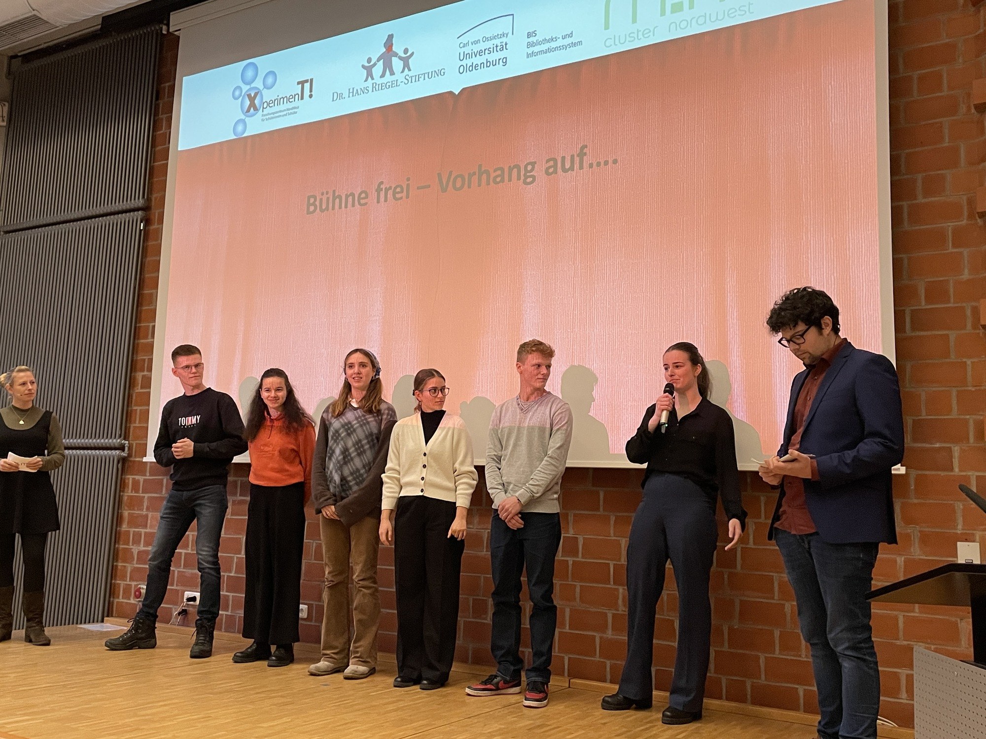 Am Ende der Veranstaltung konnten alle zufrieden nach Hause gehen – alle Slammer erhielten als gemeinsamen Preis für ihren Auftritt eine Exkursion nach Bremerhaven, um dort im Alfred-Wegner Institut für Polar- und Meeresforschung brandaktuelle Forschungsluft zu schnuppern und im Klimahaus Bremerhaven exklusiv eine Führung von Experten zu genießen. Die 12.Klässler nahmen die Erfahrung mit, dass es viel Arbeit ist, sich in ein wissenschaftliches Thema einzuarbeiten, aber das es durchaus lohnenswert ist und dieses sogar bis zur Bühnenreife wachsen kann. Die Veranstalter, XperimenT! und die Universitätsbibliothek unter dem Dach des AHOI_MINT Clusters Nordwest, freuten sich über die vielen jungen Menschen, die sich für MINT-Themen und Wissenschaftskommunikation interessieren.