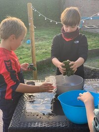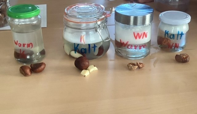 Eine weitere Aufgabe zum Herbstexperiment war das Herstellen von Seife aus Waschnüssen und das Durchführen von Waschexperimenten. Auch sollten die Gruppen herausfinden, was Saponine sind und ob es andere Pflanzen gibt, mit denen Wäsche gewaschen werden kann.